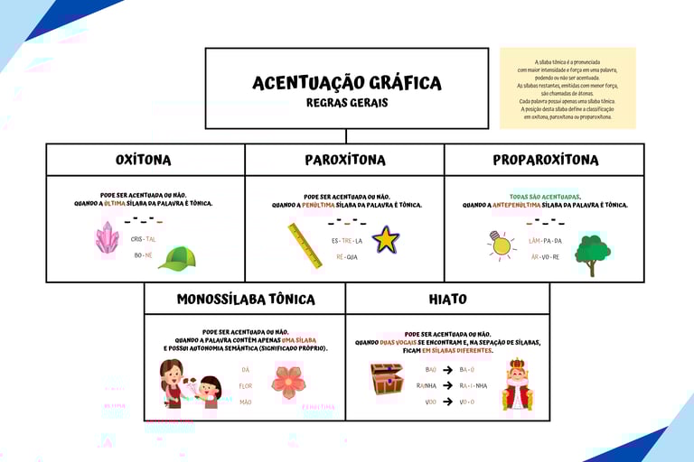 ACENTUÇÃO GRÁFICA: Regras Gerais - Oxítona, Paroxítona, Proparoxítona, Monossílaba Tônica e Hiato.