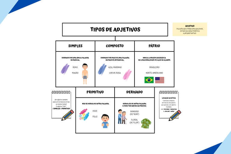 TIPOS DE ADJETIVOS: Simples, Composto, Pátrio, Primitivo e Derivado.