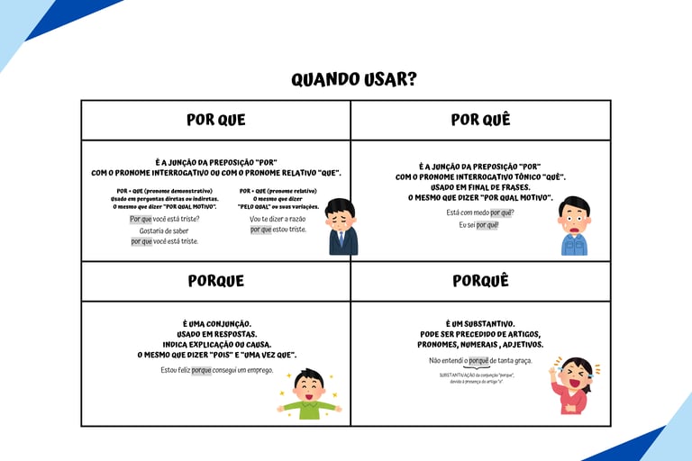 “POR QUE”, “POR QUÊ”, “PORQUE” E “PORQUÊ”: Quando usar?